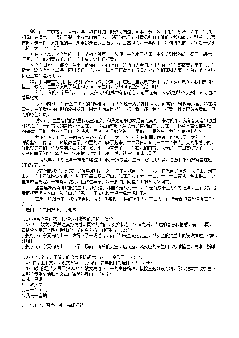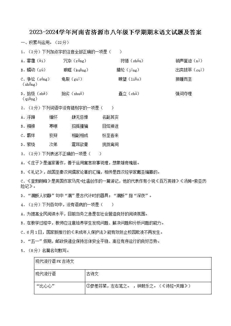 【文档名称】 2023-2024学年河南省济源市八年级下学期期末语文试题及答案(Word版).doc