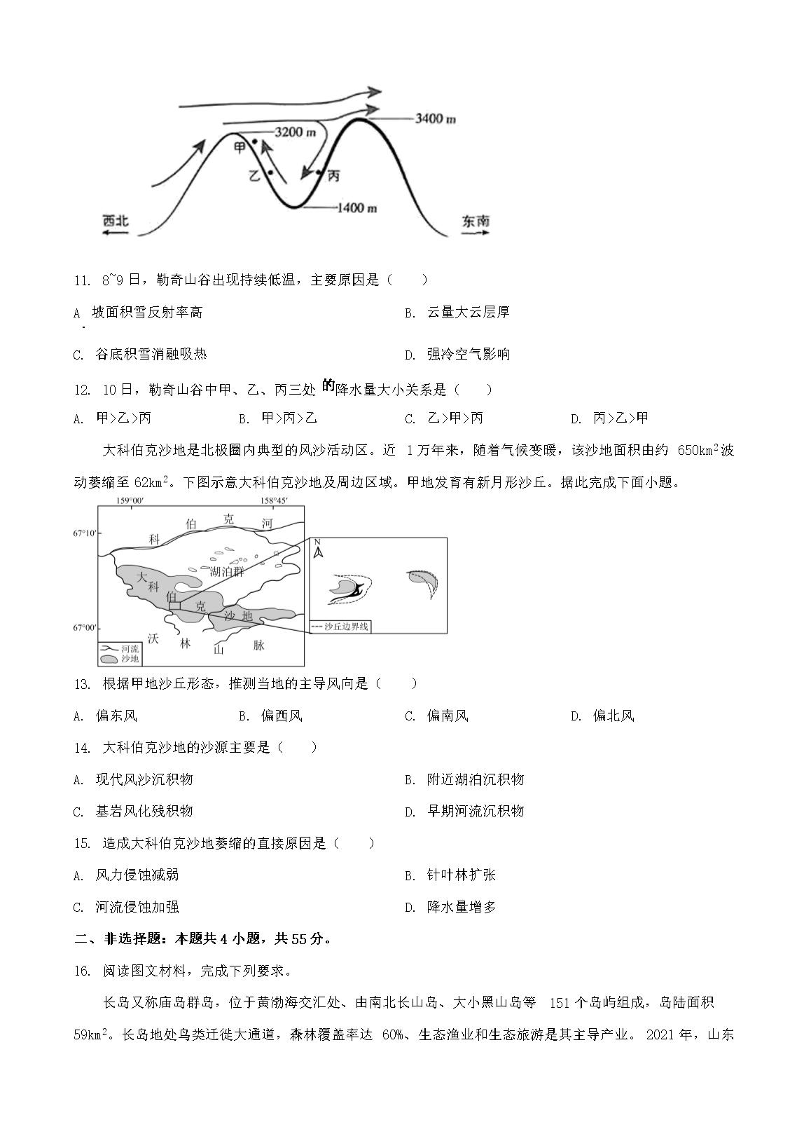 【文档名称】 2025年山西学考选择性考试地理试题及答案(Word版).doc