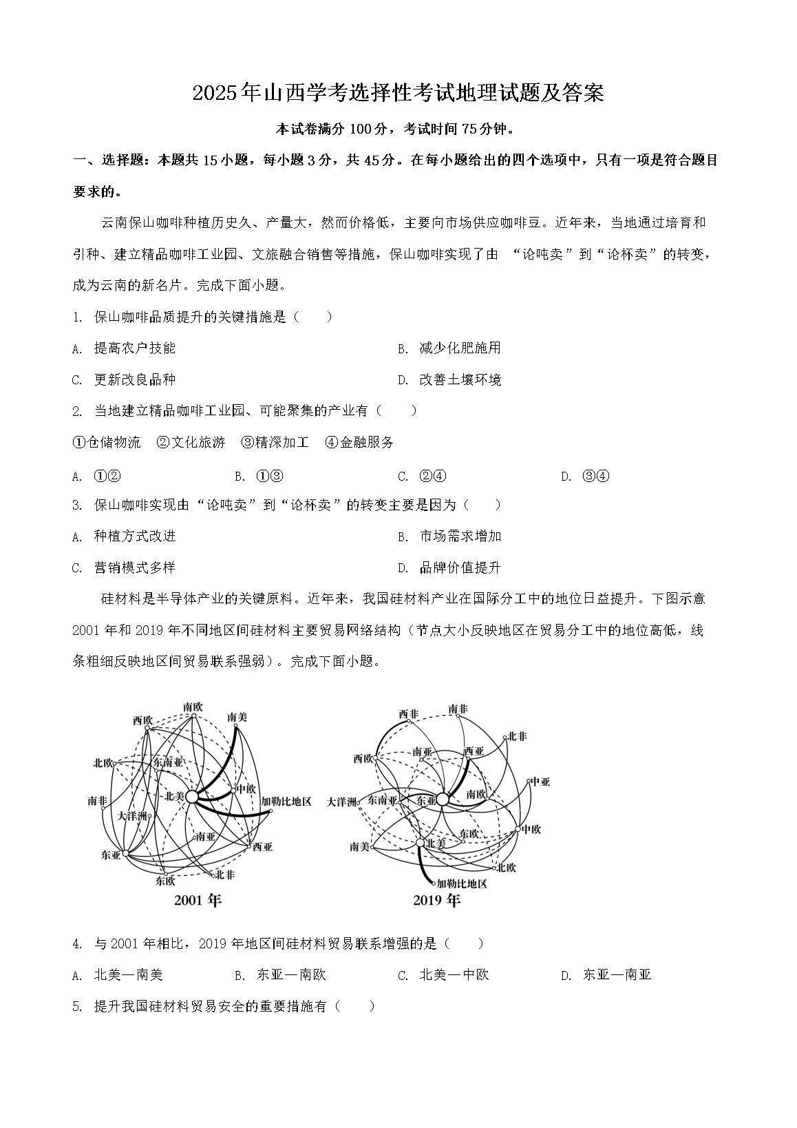 【文档预览】 无忧考网整理发布2025年山西学考选择性考试地理试题及答案(Word版),前五页预览如下: