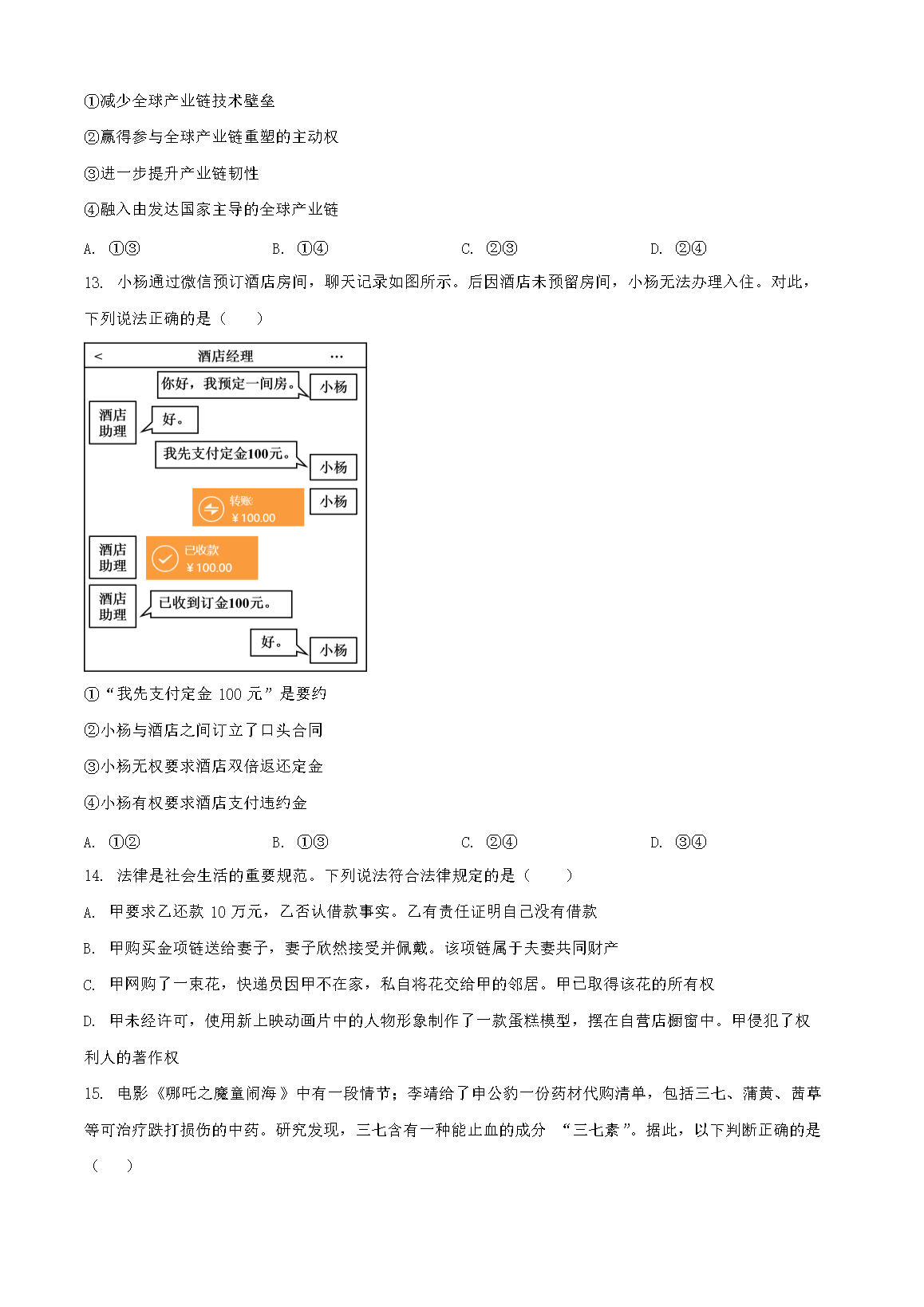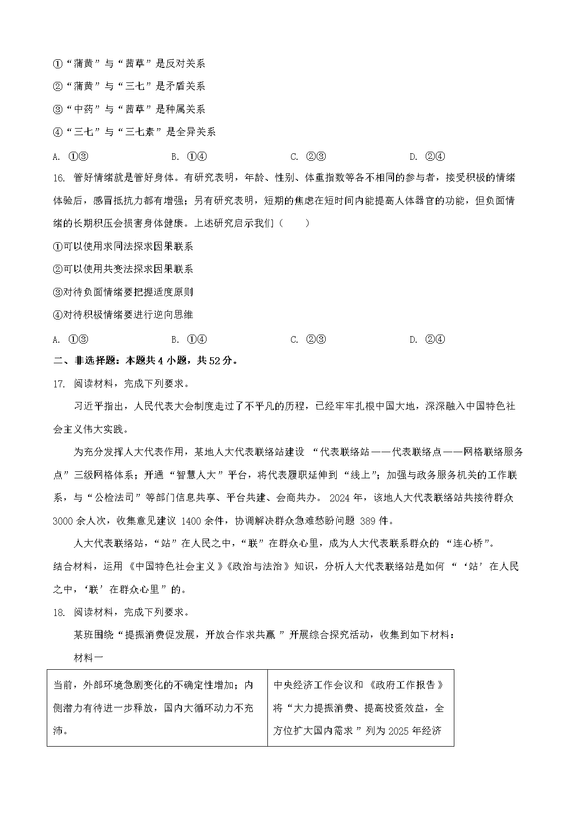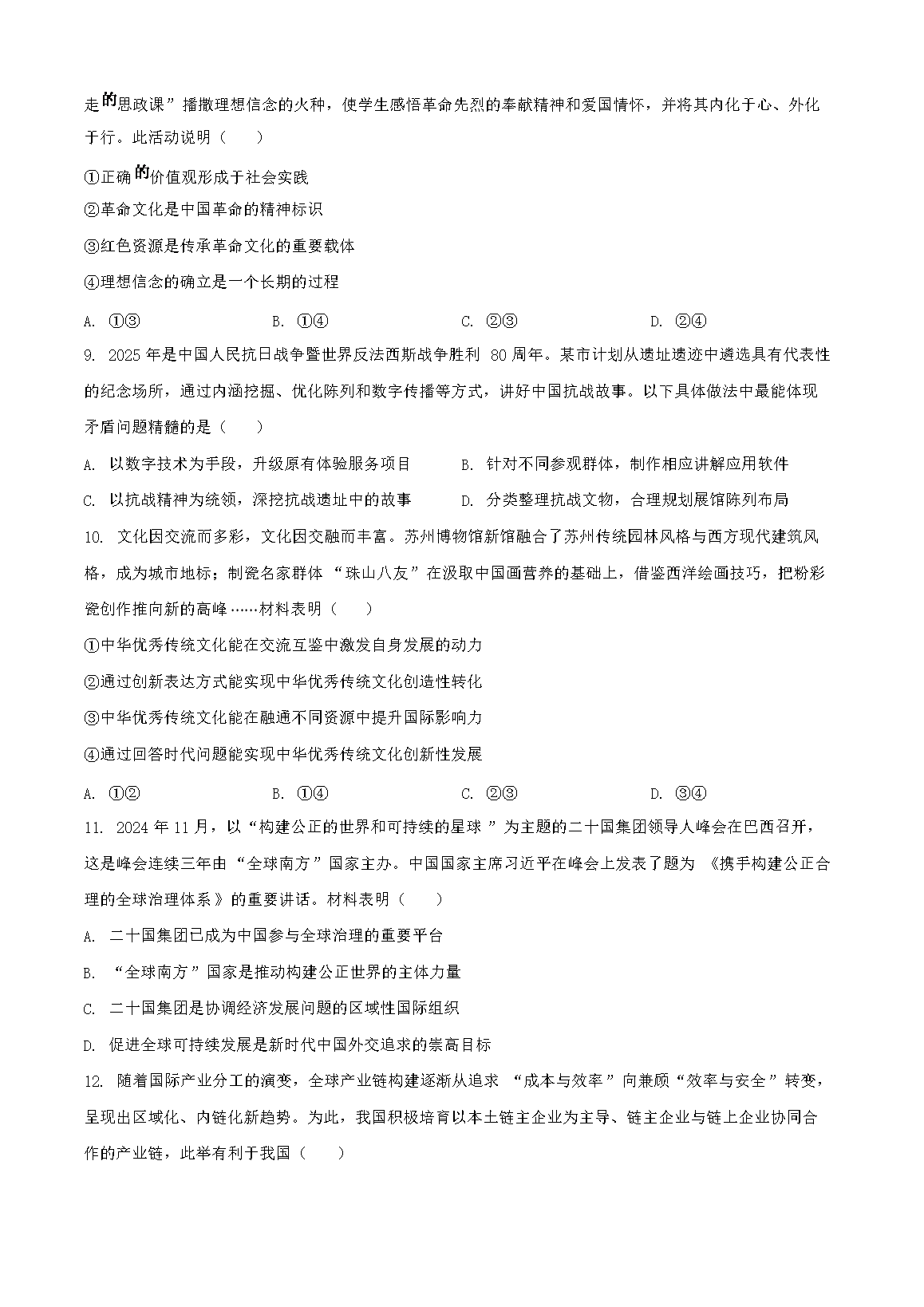 【文档名称】 2025年陕西学考选择性考试政治试题及答案(Word版).doc