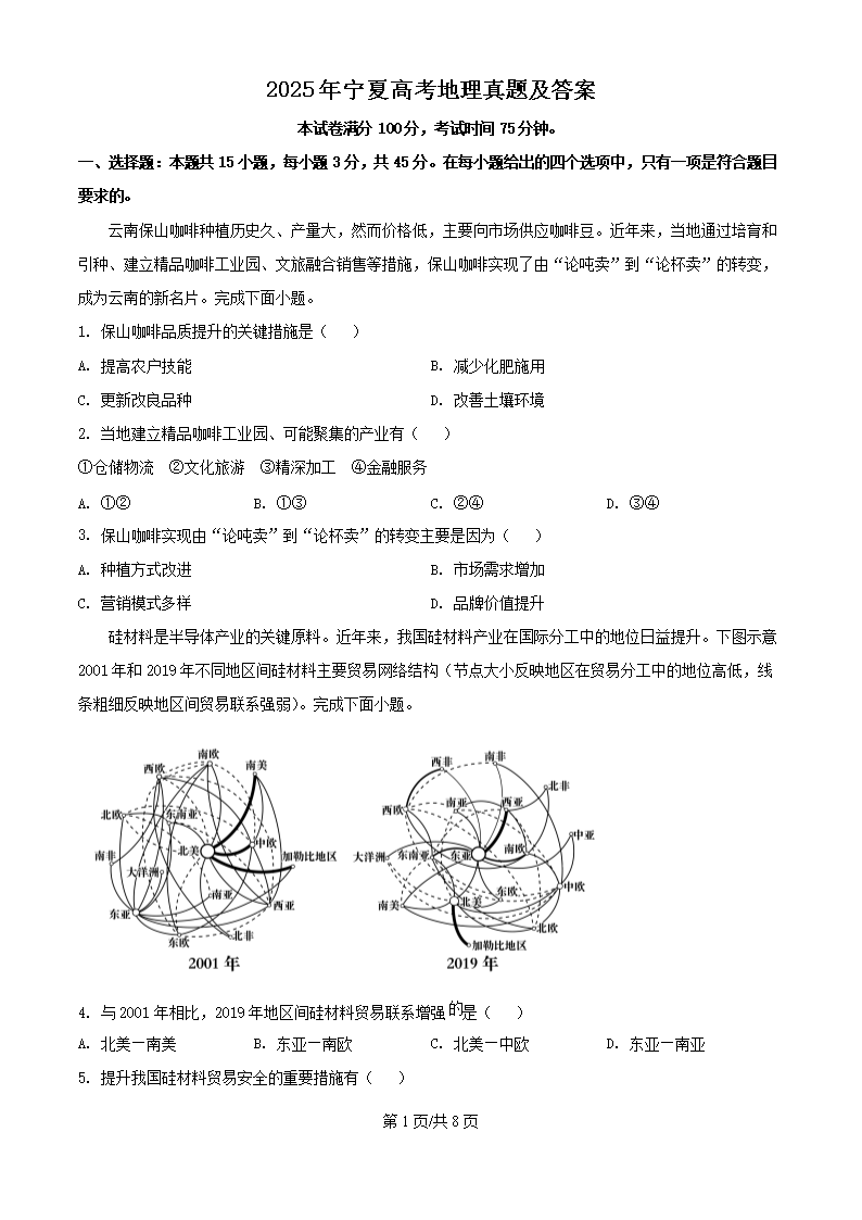 【文档预览】 无忧考网整理发布2025年宁夏高考地理真题及答案(Word版),前五页预览如下: