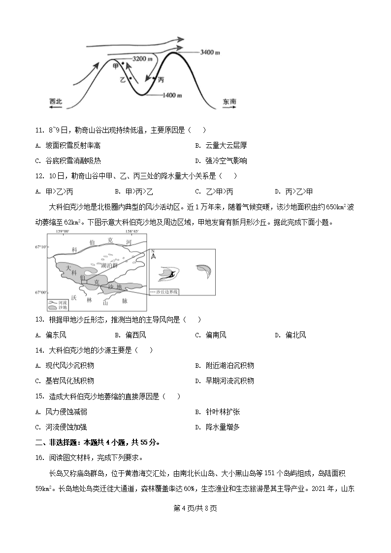 【文档名称】 2025年宁夏高考地理真题及答案(Word版).doc