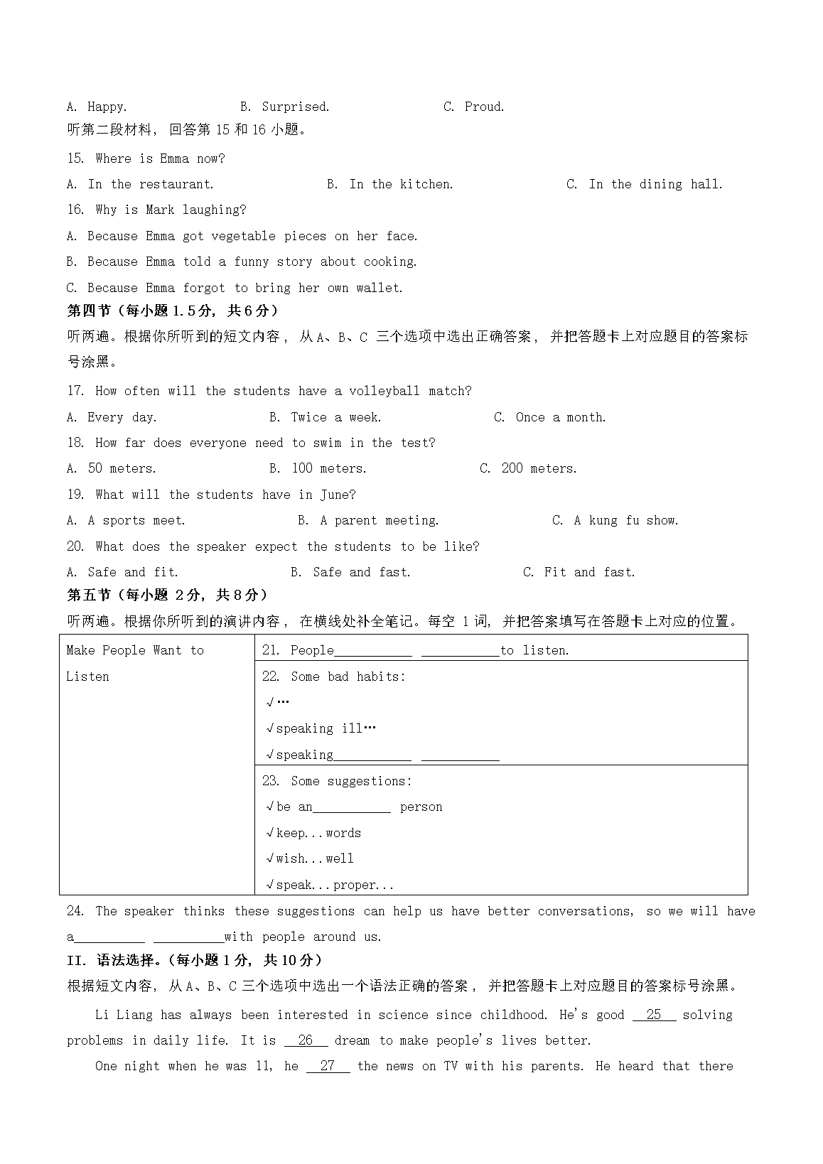 【文档名称】 2025年重庆中考英语试题及答案(Word版).doc