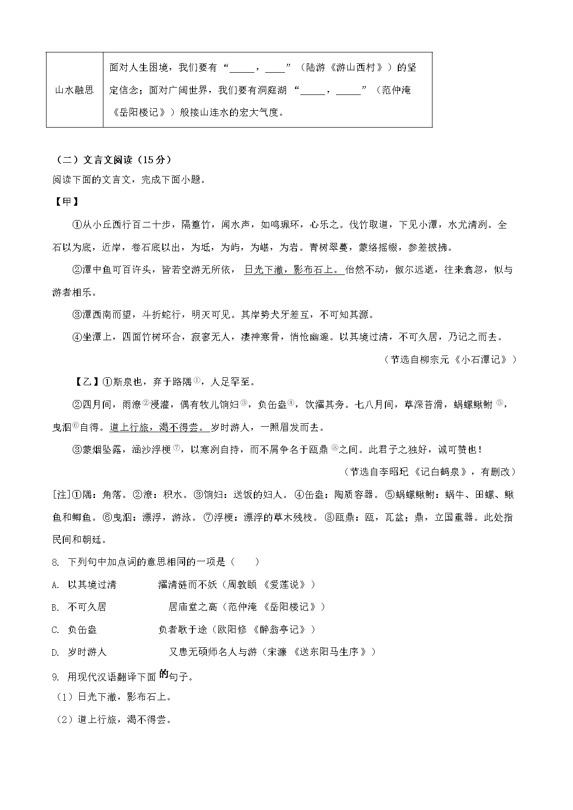 【文档名称】 2025年重庆中考语文试题及答案(Word版).doc