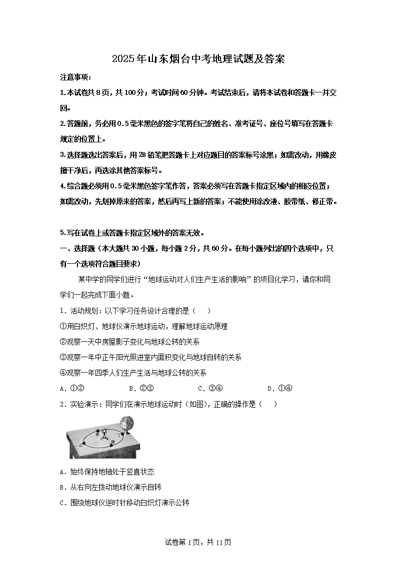 【文档名称】 2025年山东烟台中考地理试题及答案(Word版).doc