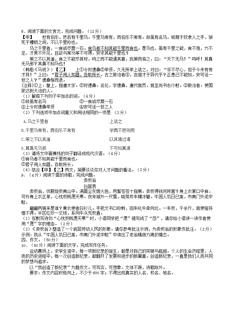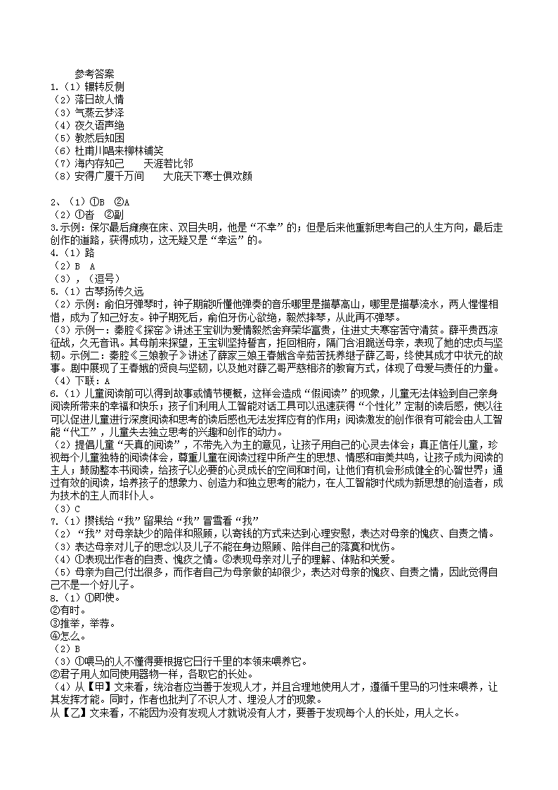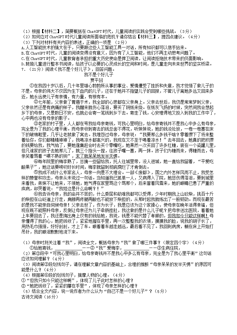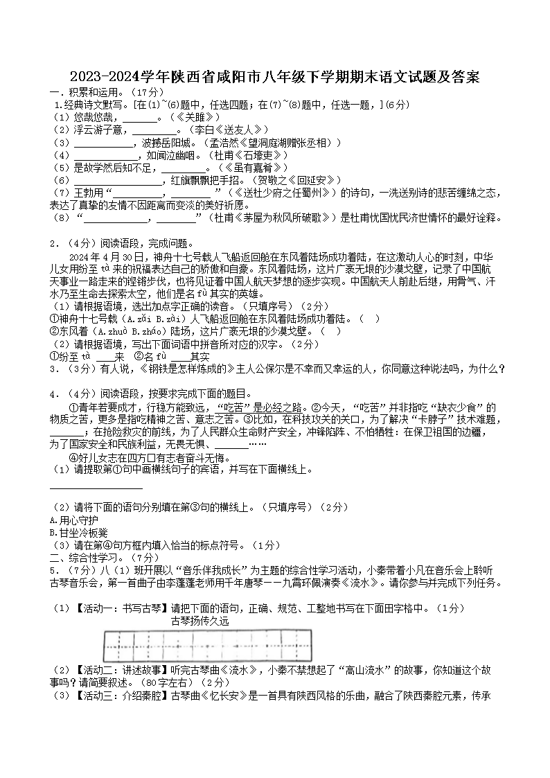 【文档名称】 2023-2024学年陕西省咸阳市八年级下学期期末语文试题及答案(Word版).doc