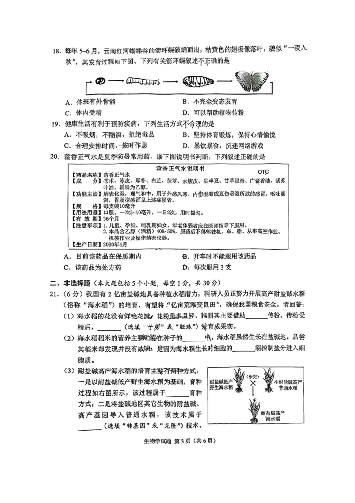 【文档预览】 无忧考网整理发布2025年重庆万盛中考生物真题及答案(图片版),前五页预览如下: