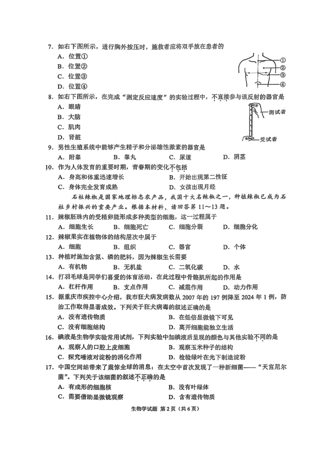【文档名称】 2025年重庆长寿中考生物真题及答案(图片版).doc