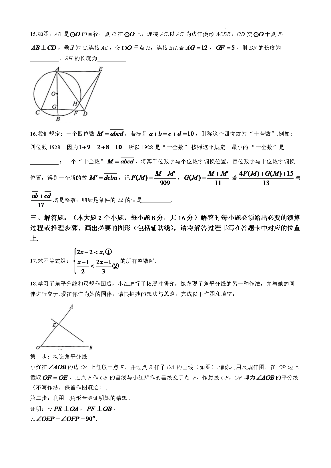 【文档名称】 2025年重庆九龙坡中考数学试题及答案(Word版).doc