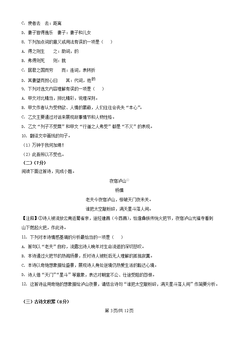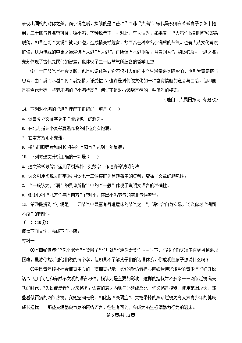 【文档名称】 2025年四川凉山中考语文试题及答案(Word版).doc