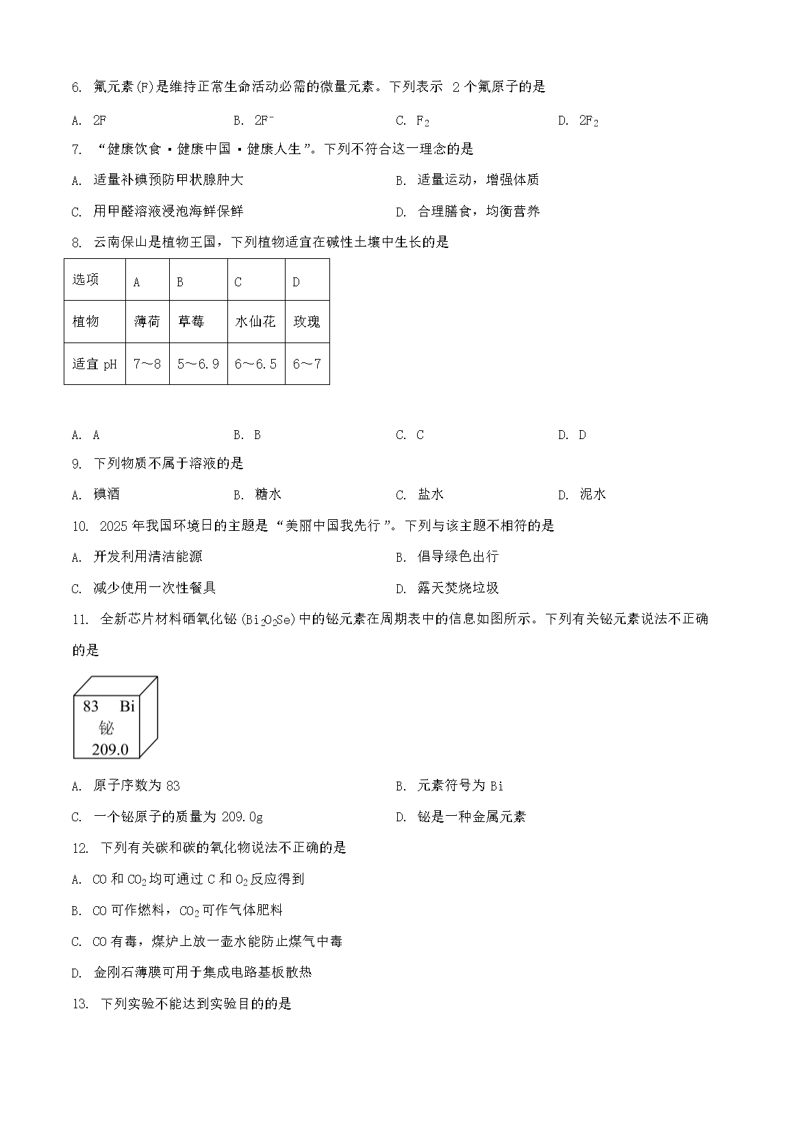 【文档名称】 2025年云南保山中考化学试题及答案(Word版).doc
