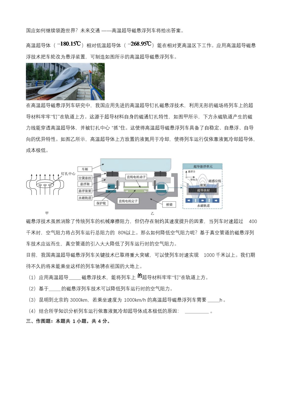 【文档名称】 2025年云南普洱中考物理试题及答案(Word版).doc