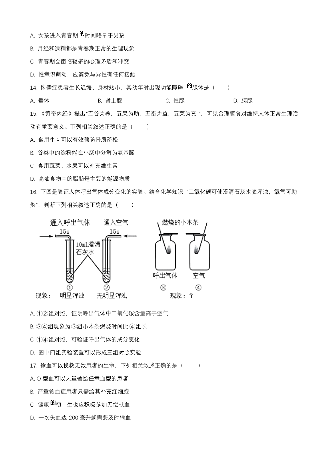 【文档名称】 2025年云南德宏中考生物试题及答案(Word版).doc