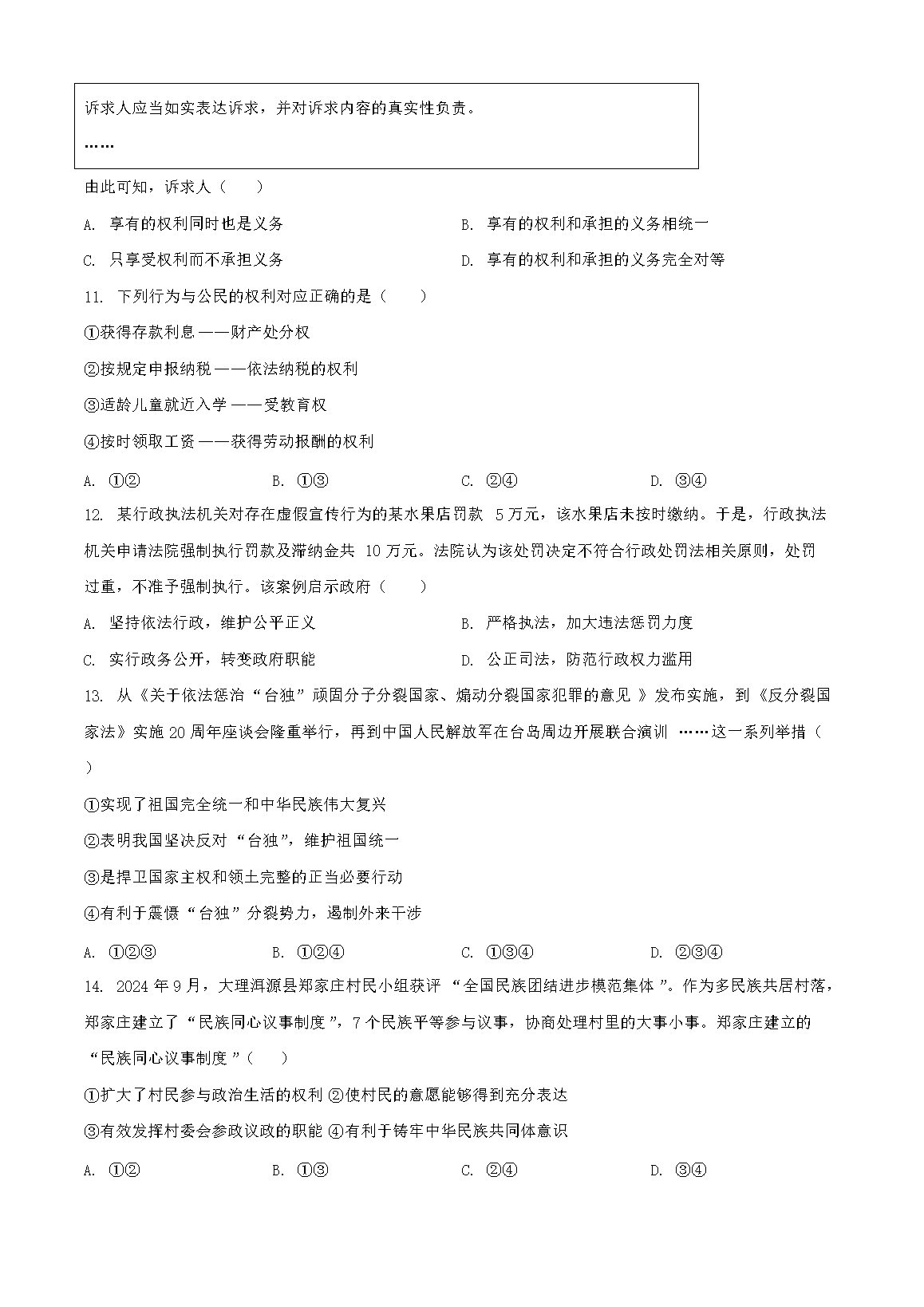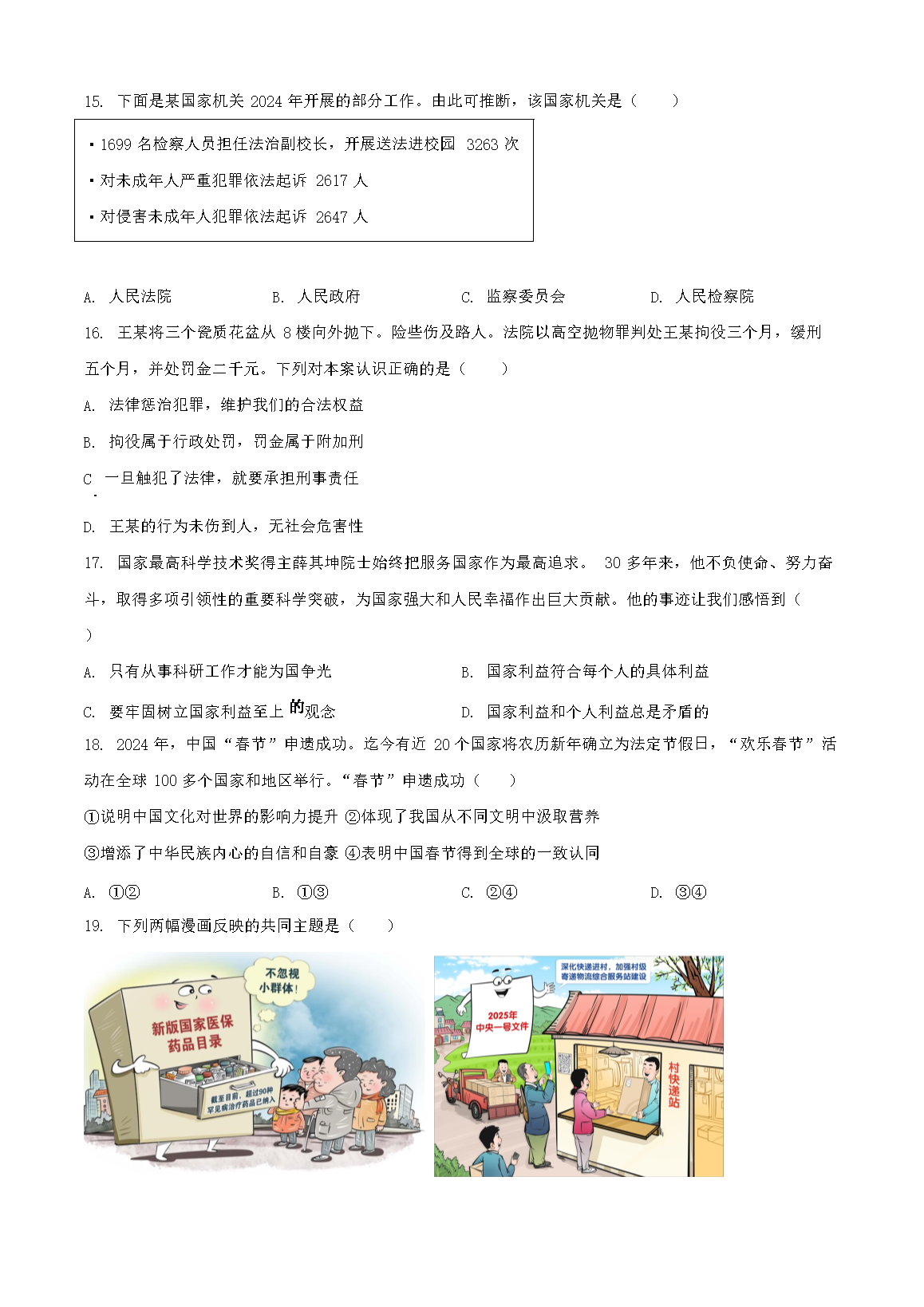【文档名称】 2025年云南德宏中考道德与法治试题及答案(Word版).doc