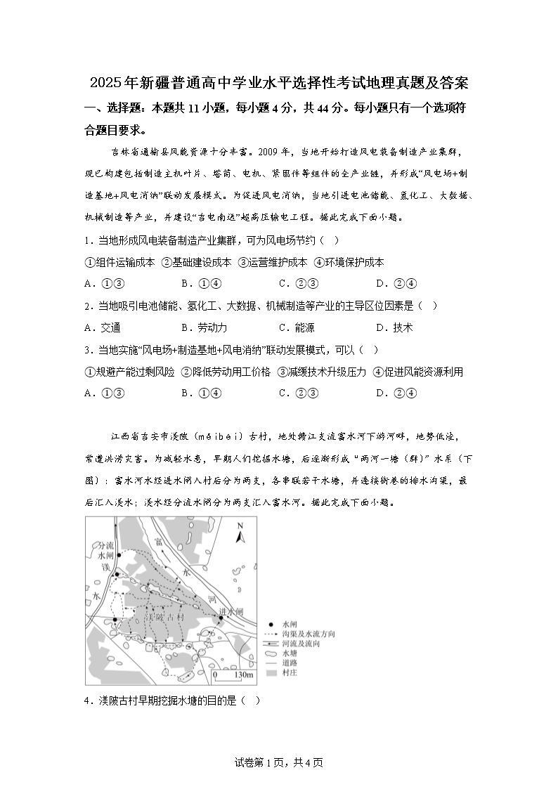 【文档名称】 2025年新疆学考选择性考试地理真题及答案(Word版).doc