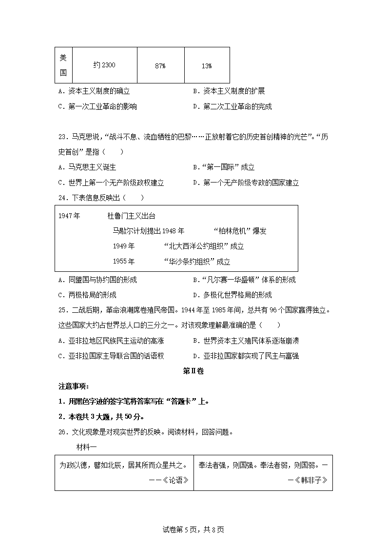 【文档预览】 无忧考网整理发布2025年天津西青中考历史试题及答案(Word版),前五页预览如下: