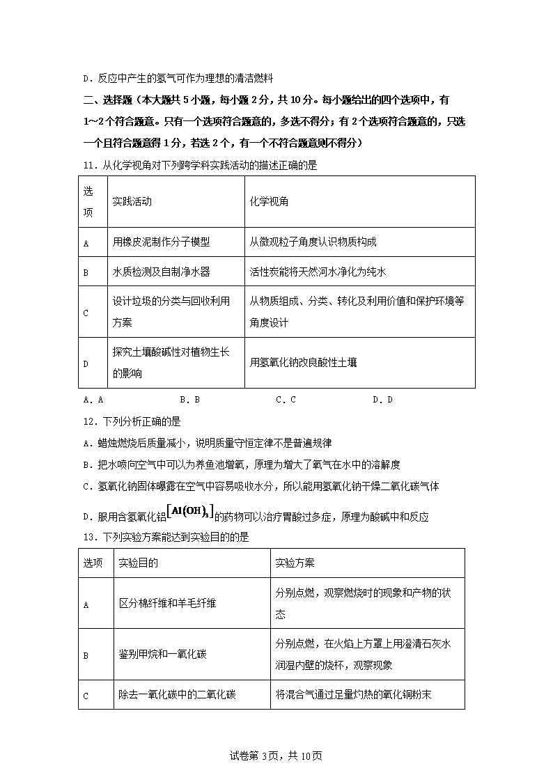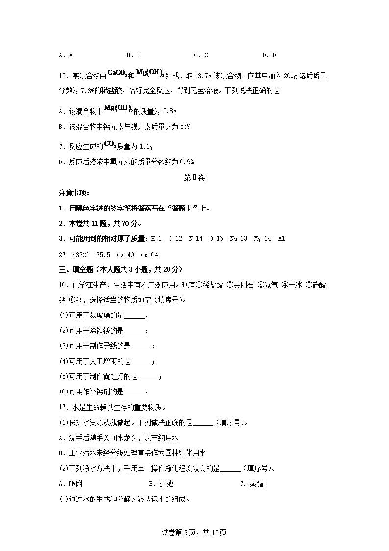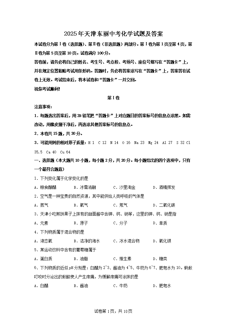 【文档名称】 2025年天津东丽中考化学试题及答案(Word版).doc