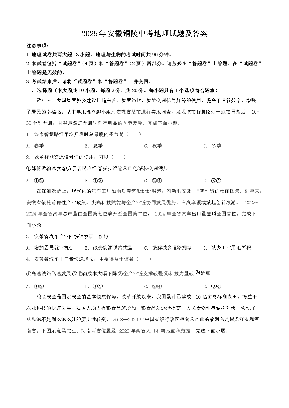 【文档预览】 无忧考网整理发布2025年安徽铜陵中考地理试题及答案(Word版),前五页预览如下: