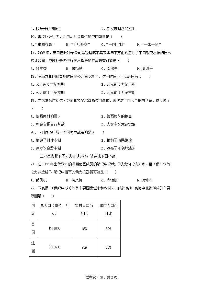【文档名称】 2025年天津红桥中考历史试题及答案(Word版).doc