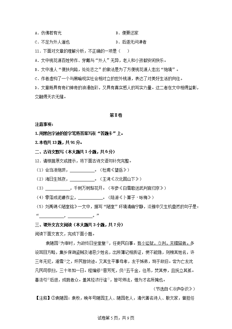 【文档名称】 2025年天津和平中考语文试题及答案(Word版).doc