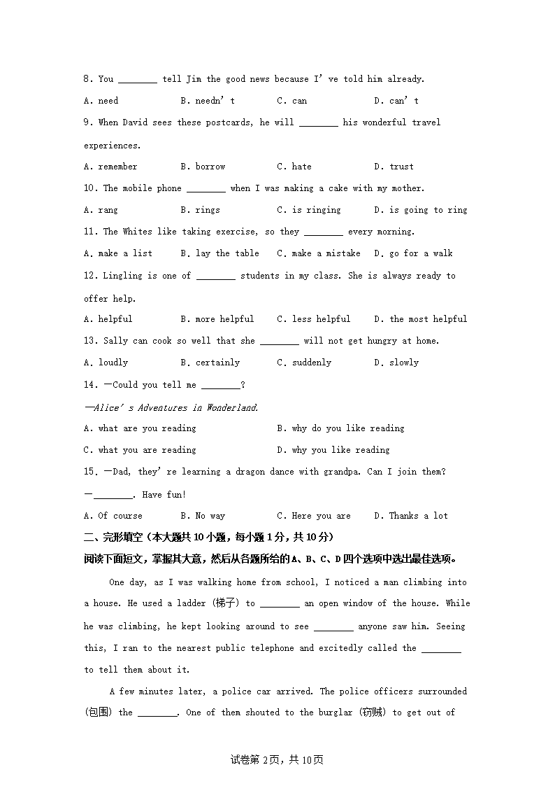 【文档名称】 2025年天津南开中考英语试题及答案(Word版).doc