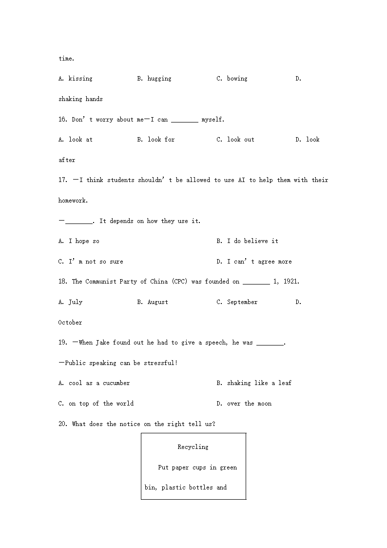 【文档名称】 2025年甘肃平凉中考英语试题及答案(Word版).doc