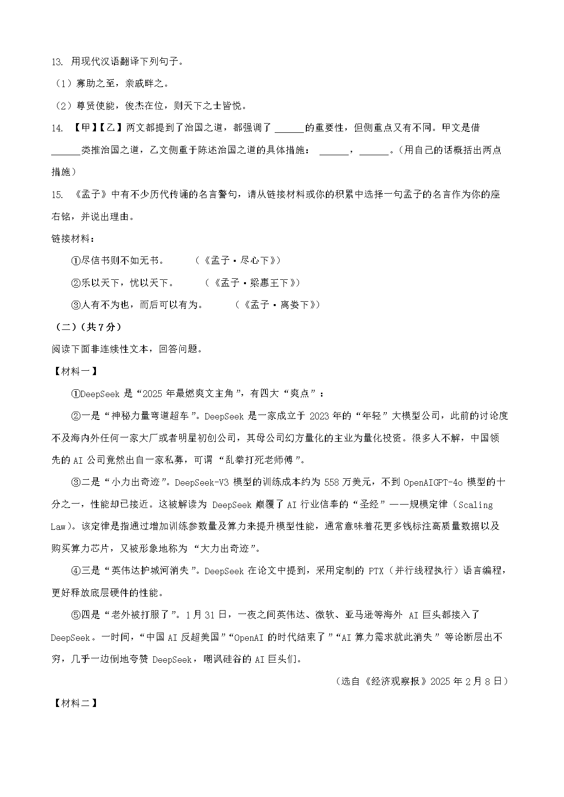 【文档预览】 无忧考网整理发布2025年黑龙江齐齐哈尔中考语文试题及答案(Word版),前五页预览如下:
