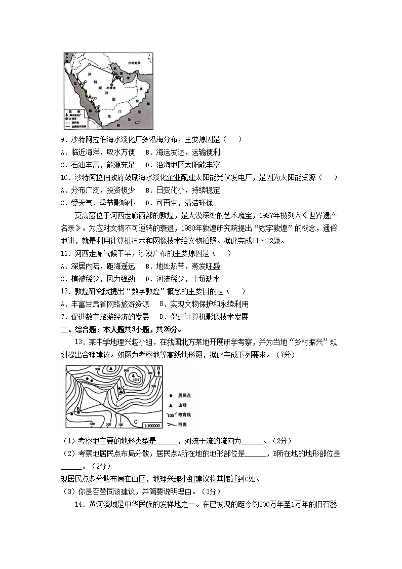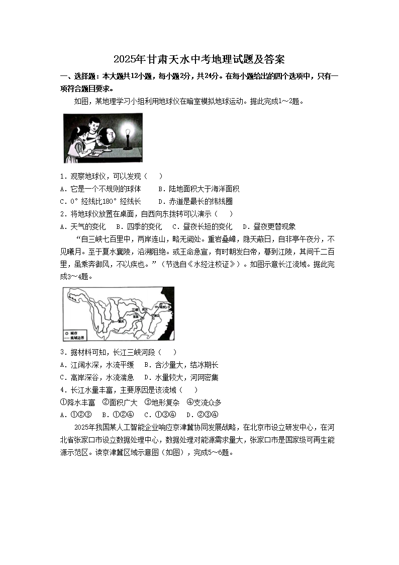【文档名称】 2025年甘肃天水中考地理试题及答案(Word版).doc