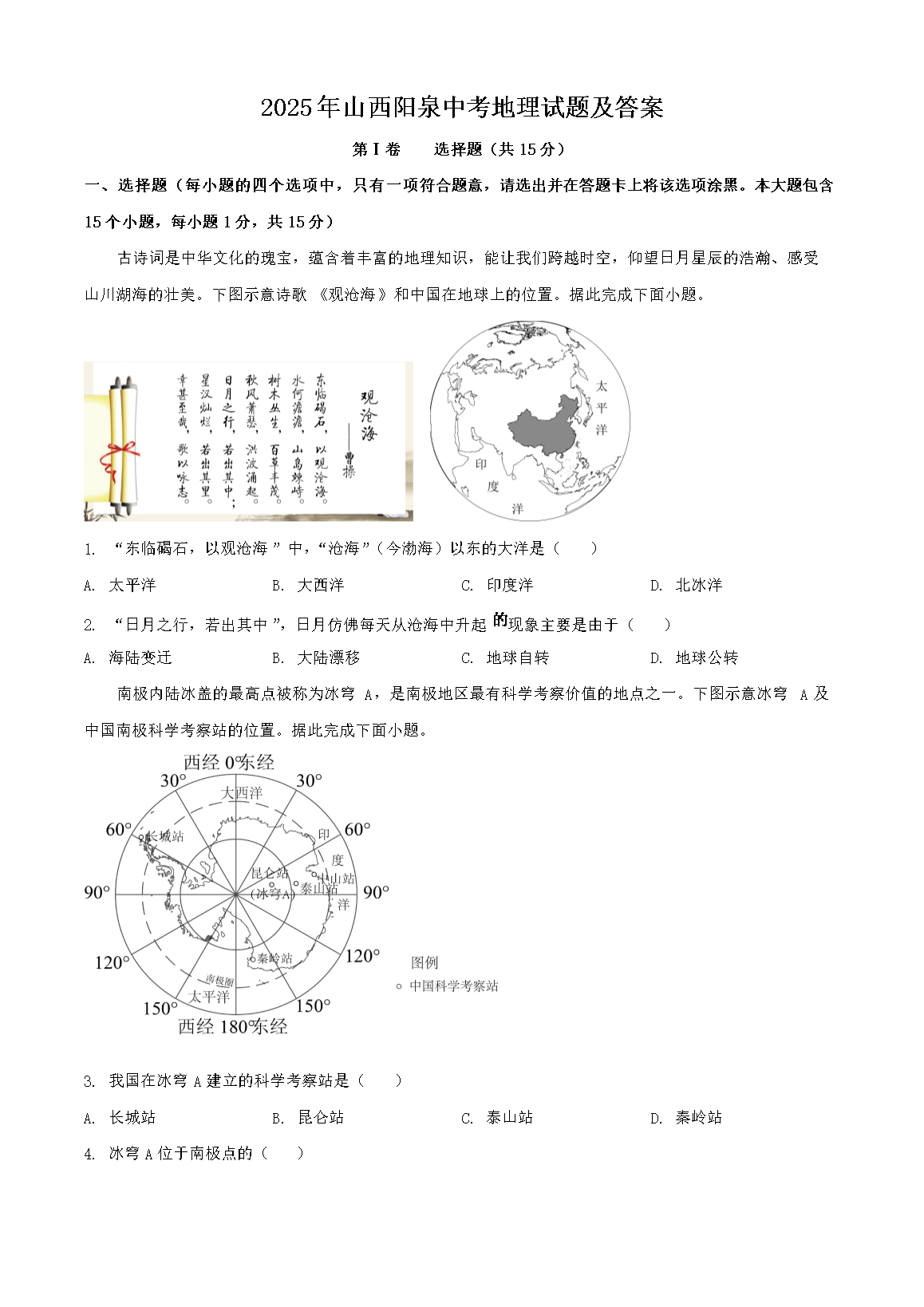 【文档名称】 2025年山西阳泉中考地理试题及答案(Word版).doc