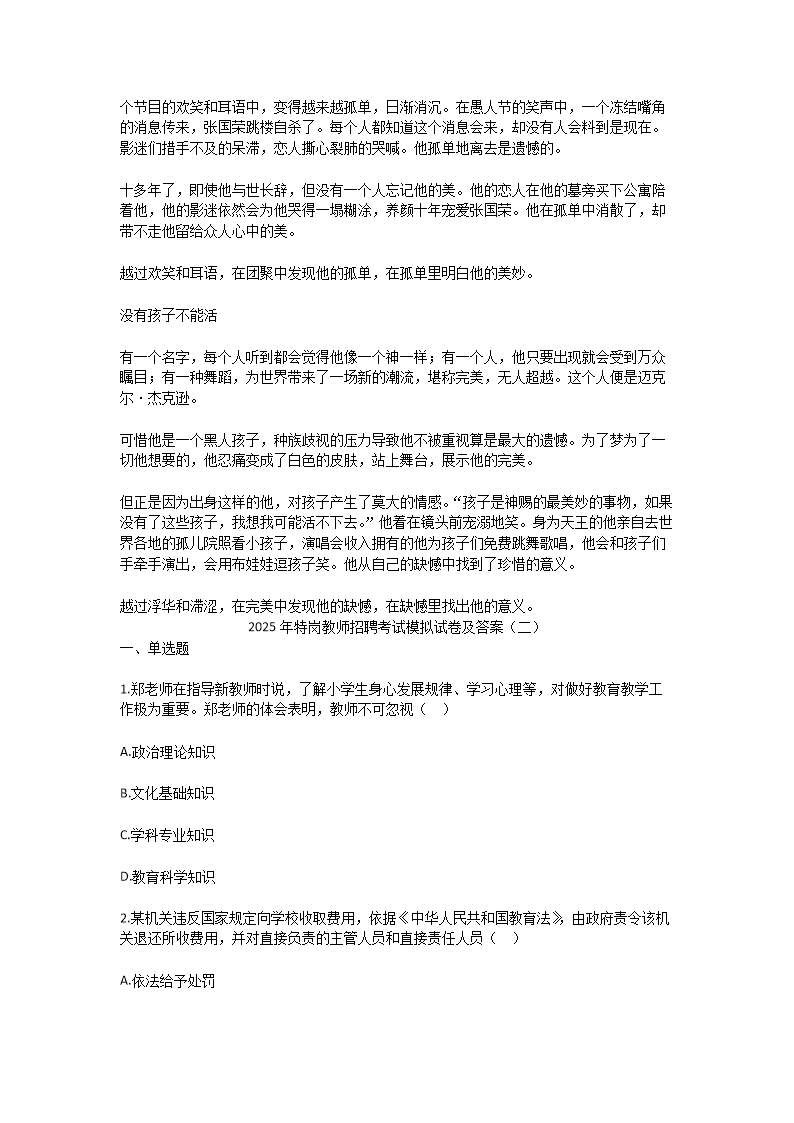 【文档预览】 无忧考网整理发布2025年特岗教师招聘考试模拟试卷及答案(Word版),前五页预览如下: