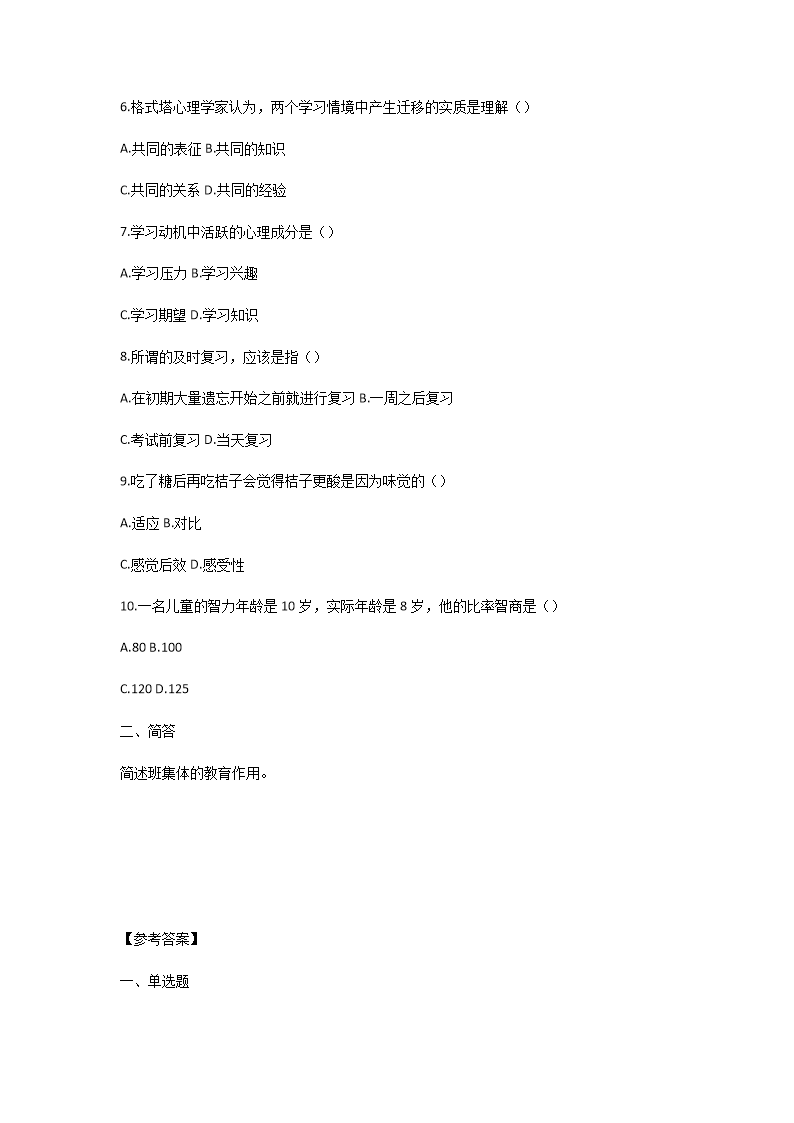 【文档名称】 2025年特岗教师招聘考试模拟题及答案(Word版).doc