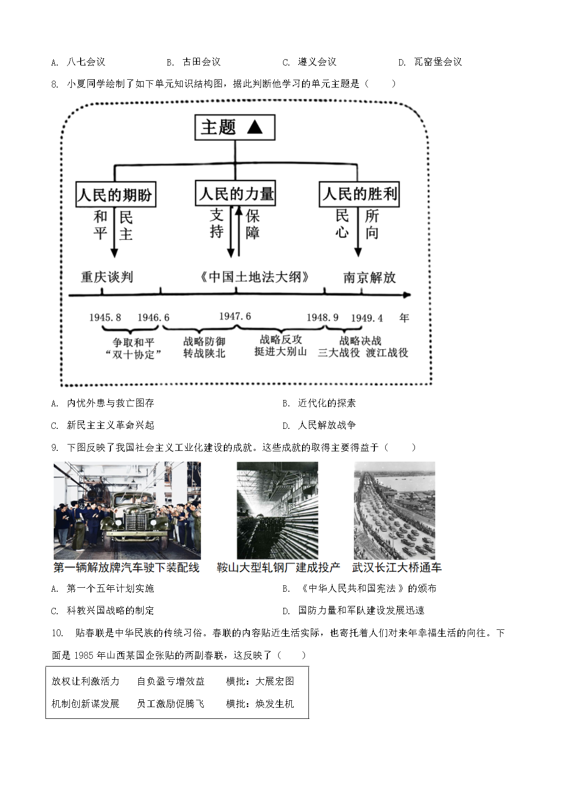 【文档名称】 2025年山西晋城中考历史试题及答案(Word版).doc