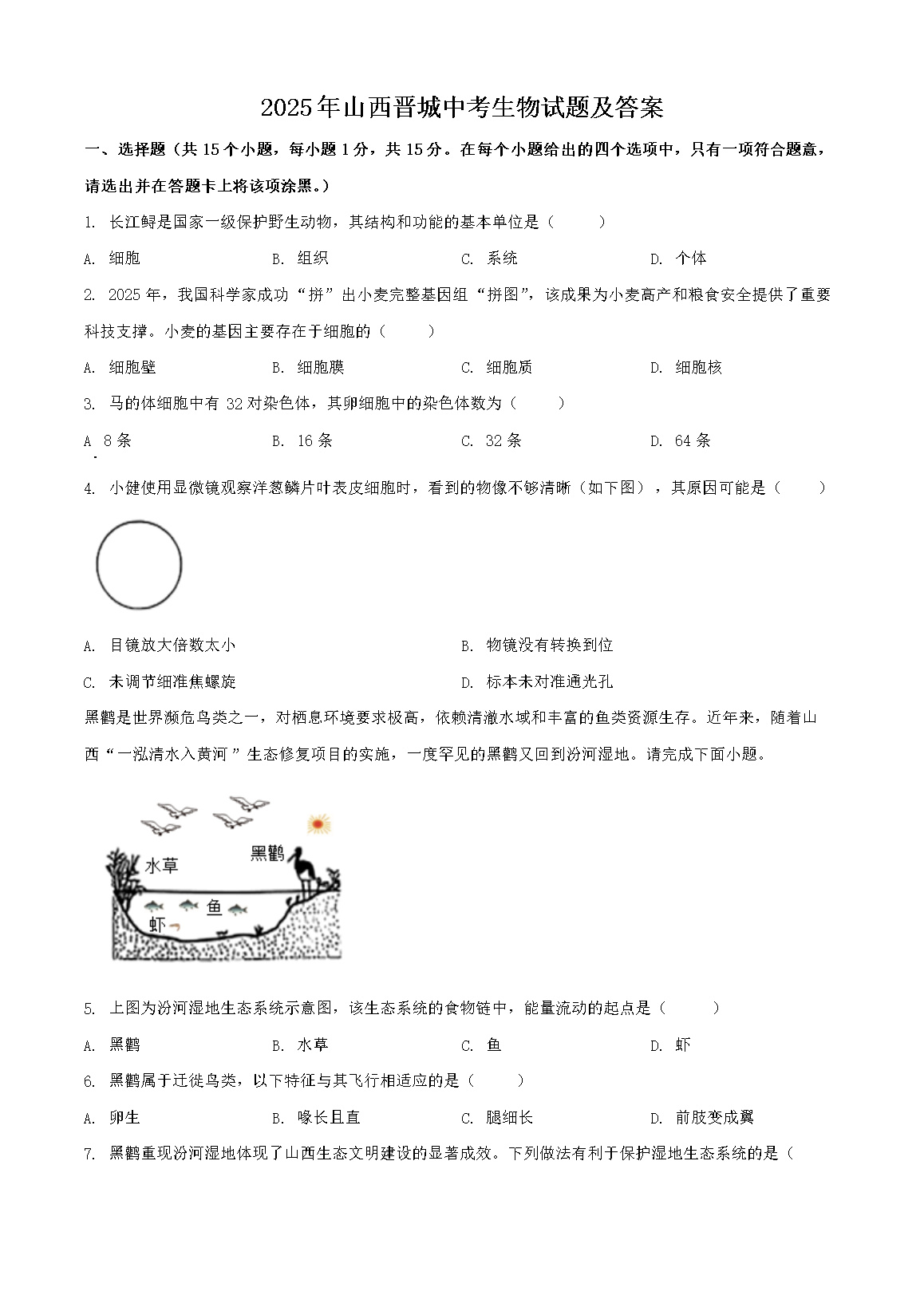 【文档预览】 无忧考网整理发布2025年山西晋城中考生物试题及答案(Word版),前五页预览如下: