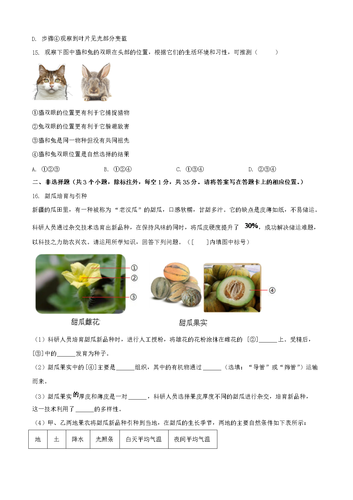 【文档名称】 2025年山西晋城中考生物试题及答案(Word版).doc