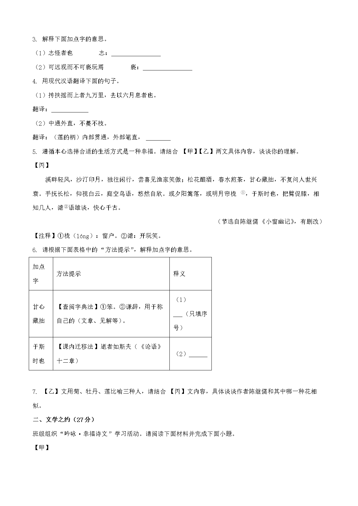 【文档名称】 2025年山西忻州中考语文试题及答案(Word版).doc