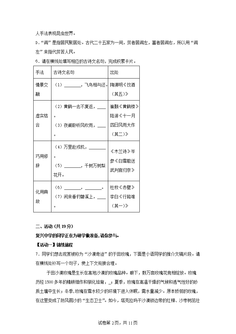 【文档预览】 无忧考网整理发布2025年新疆乌鲁木齐中考语文试题及答案(Word版),前五页预览如下: