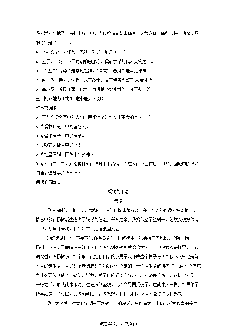 【文档名称】 2025年贵州遵义中考语文试题及答案(Word版).doc