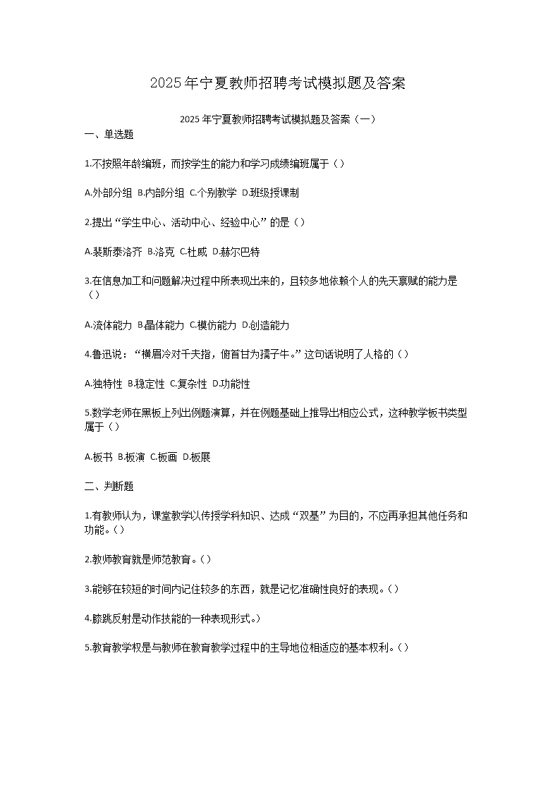 【文档名称】 2025年宁夏教师招聘考试模拟题及答案(Word版).doc