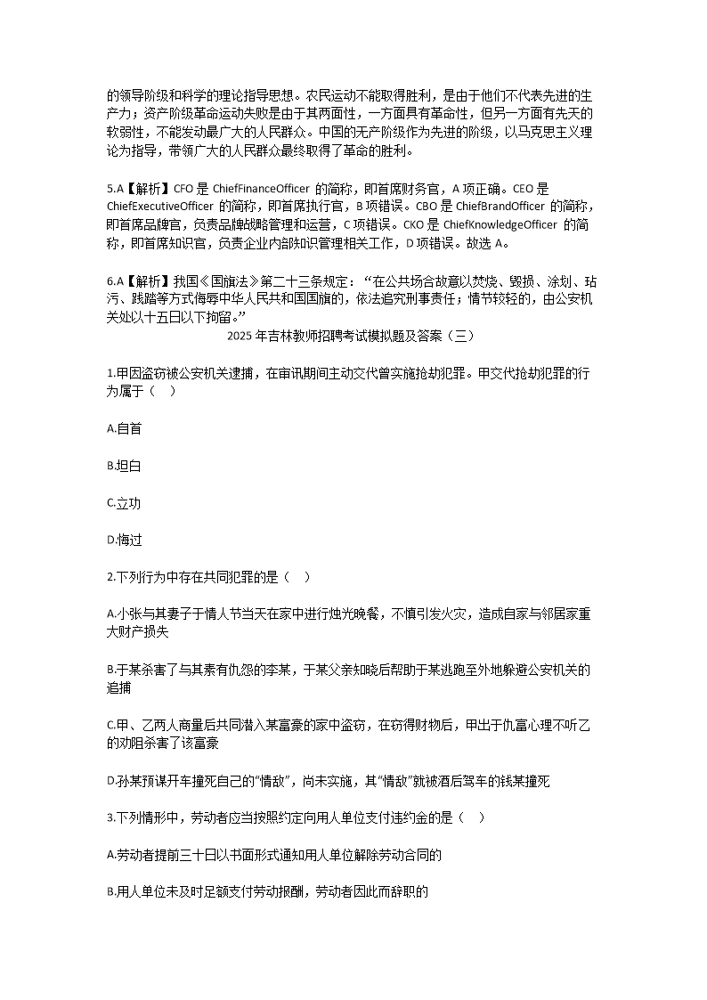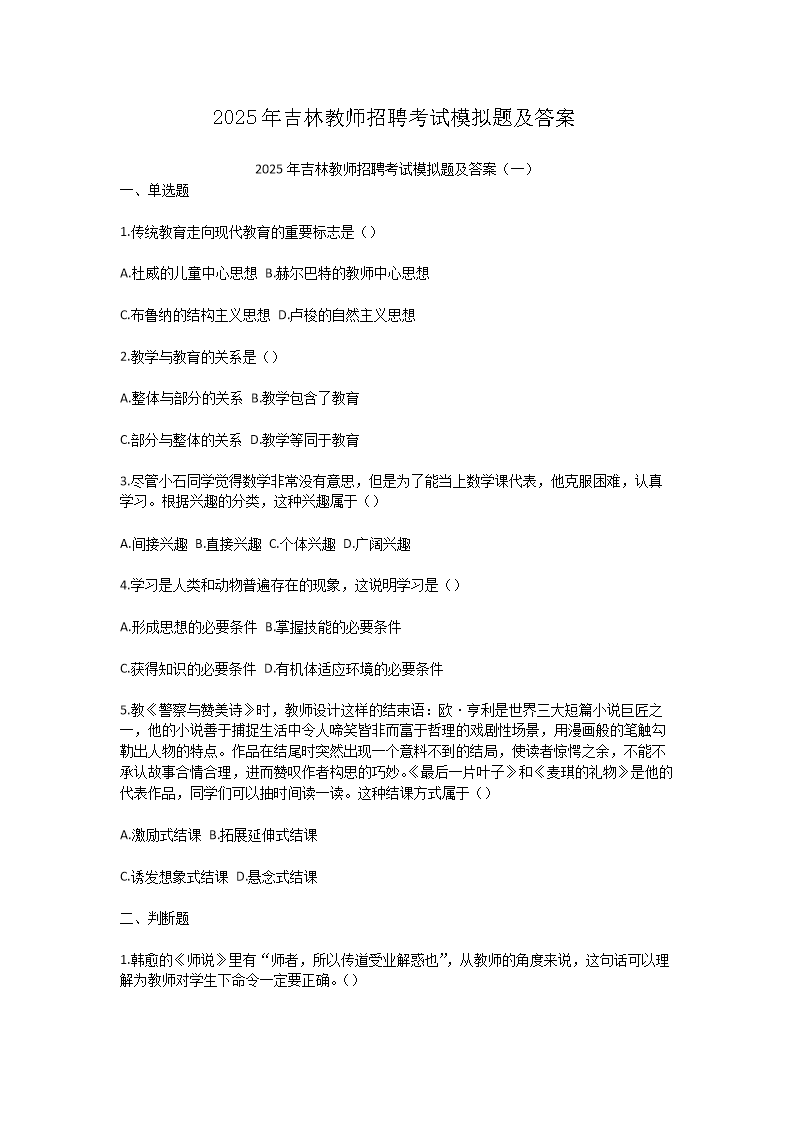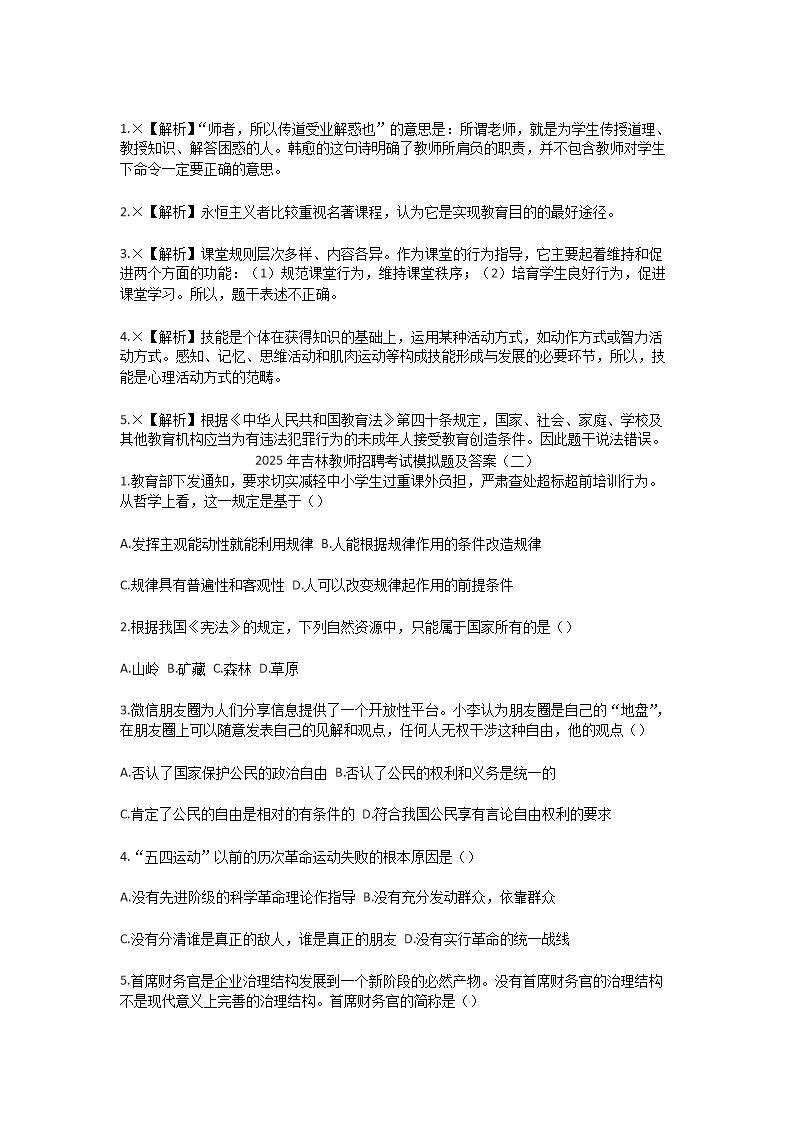 【文档预览】 无忧考网整理发布2025年吉林教师招聘考试模拟题及答案(Word版),前五页预览如下: