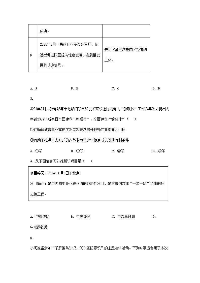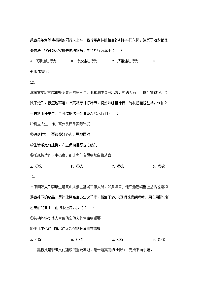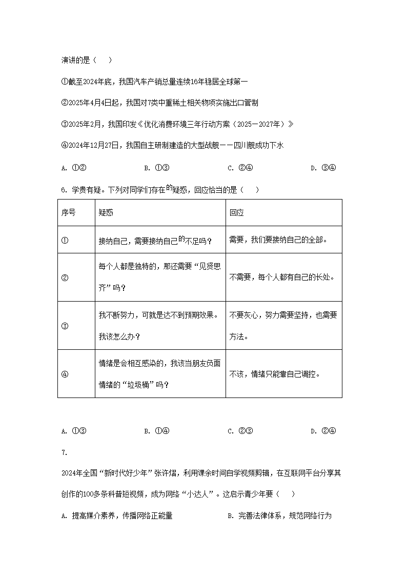 【文档名称】 2025年福建三明中考道德与法治试题及答案(Word版).doc