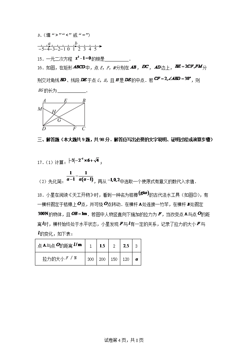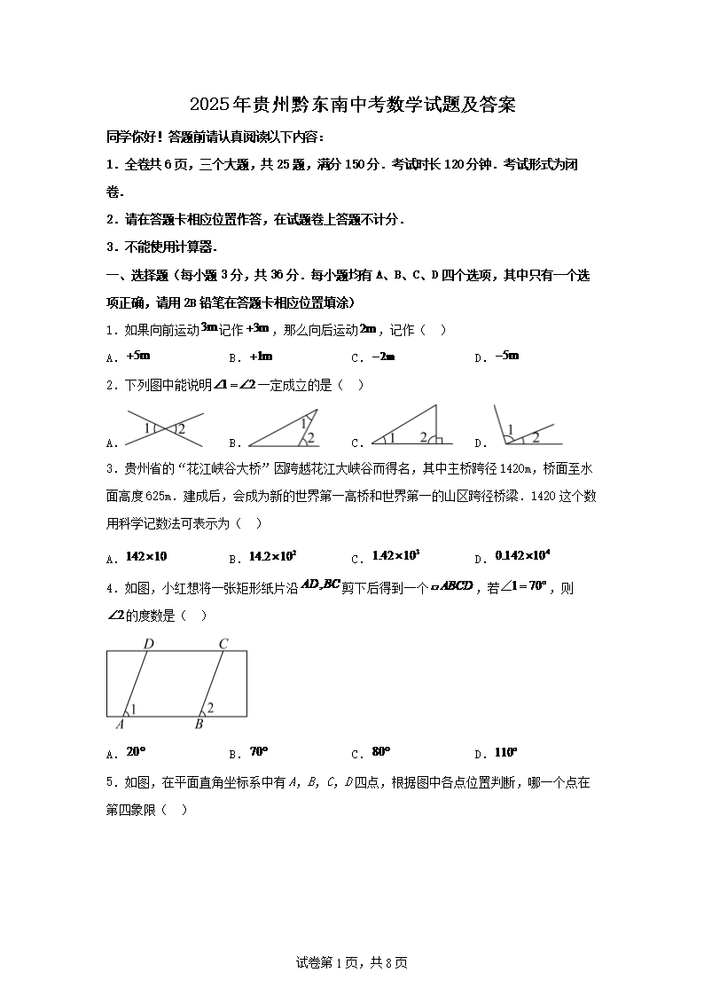 【文档名称】 2025年贵州黔东南中考数学试题及答案(Word版).doc