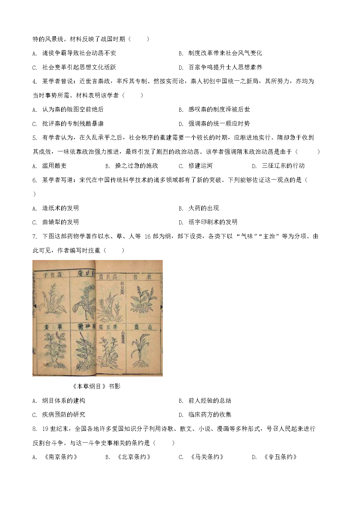 【文档名称】 2025年河南开封中考历史试题及答案(Word版).doc
