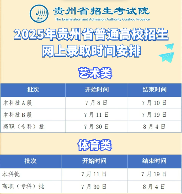 【#高考# #2025年贵州遵义高考录取时间及录取结果查询入口(已开通)#】©无忧考网从贵州省招生考试院了解到,2025年贵州遵义高考录取时间已公布,考生可根据志愿填报批次情况及2025年普通高校招生录取时间安排,在相应批次结束后通过以下渠道查询录取结果::