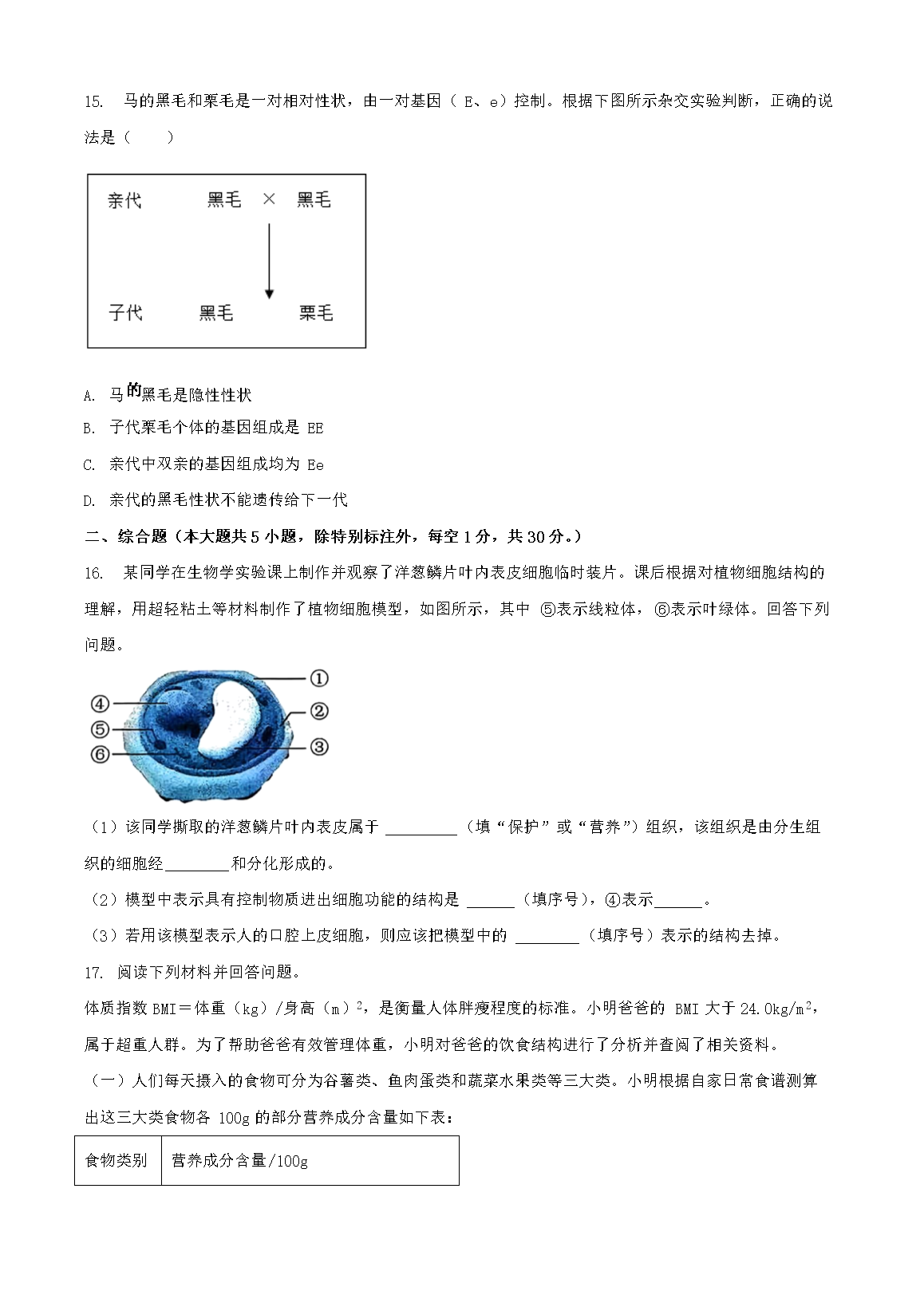 【文档名称】 2025年广西梧州中考生物试题及答案(Word版).doc