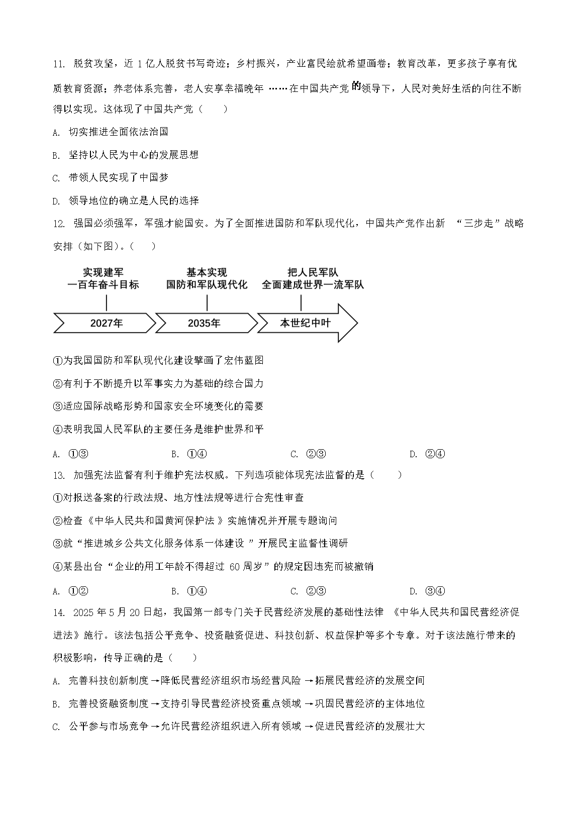 【文档名称】 2025年广西梧州中考道德与法治试题及答案(Word版).doc