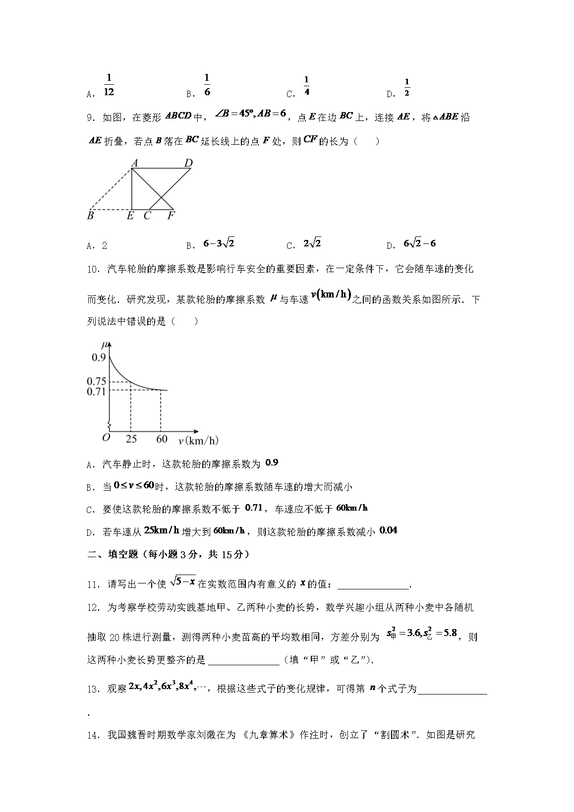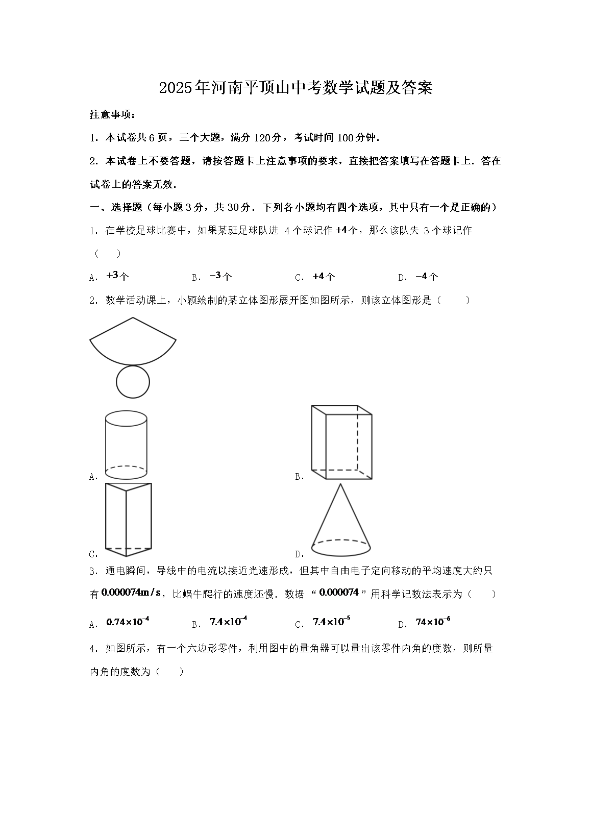【文档名称】 2025年河南平顶山中考数学试题及答案(Word版).doc