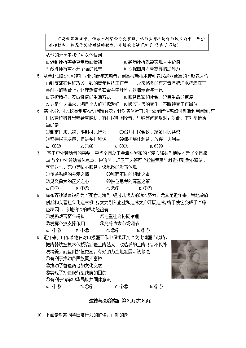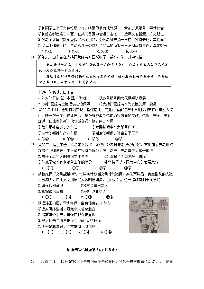 【文档名称】 2025年山东淄博中考道德与法治试题及答案(Word版).doc