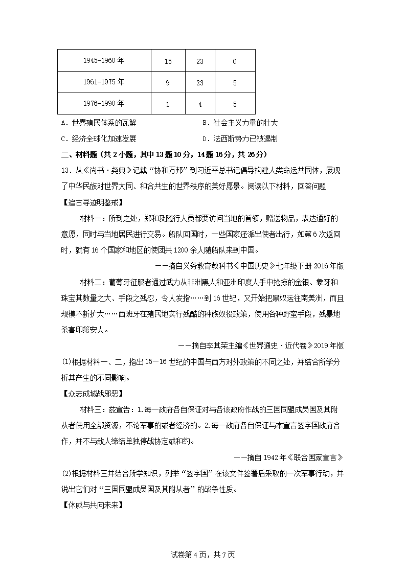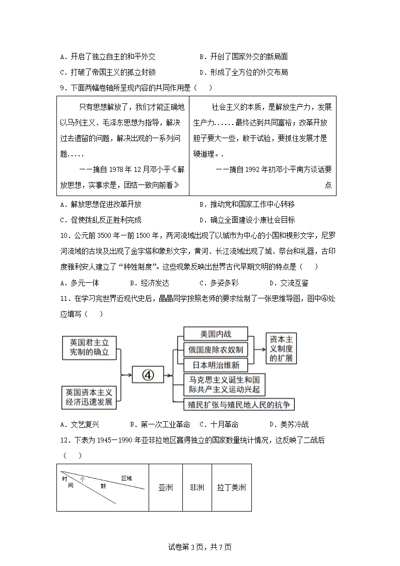 【文档名称】 2025年四川遂宁中考历史试题及答案(Word版).doc