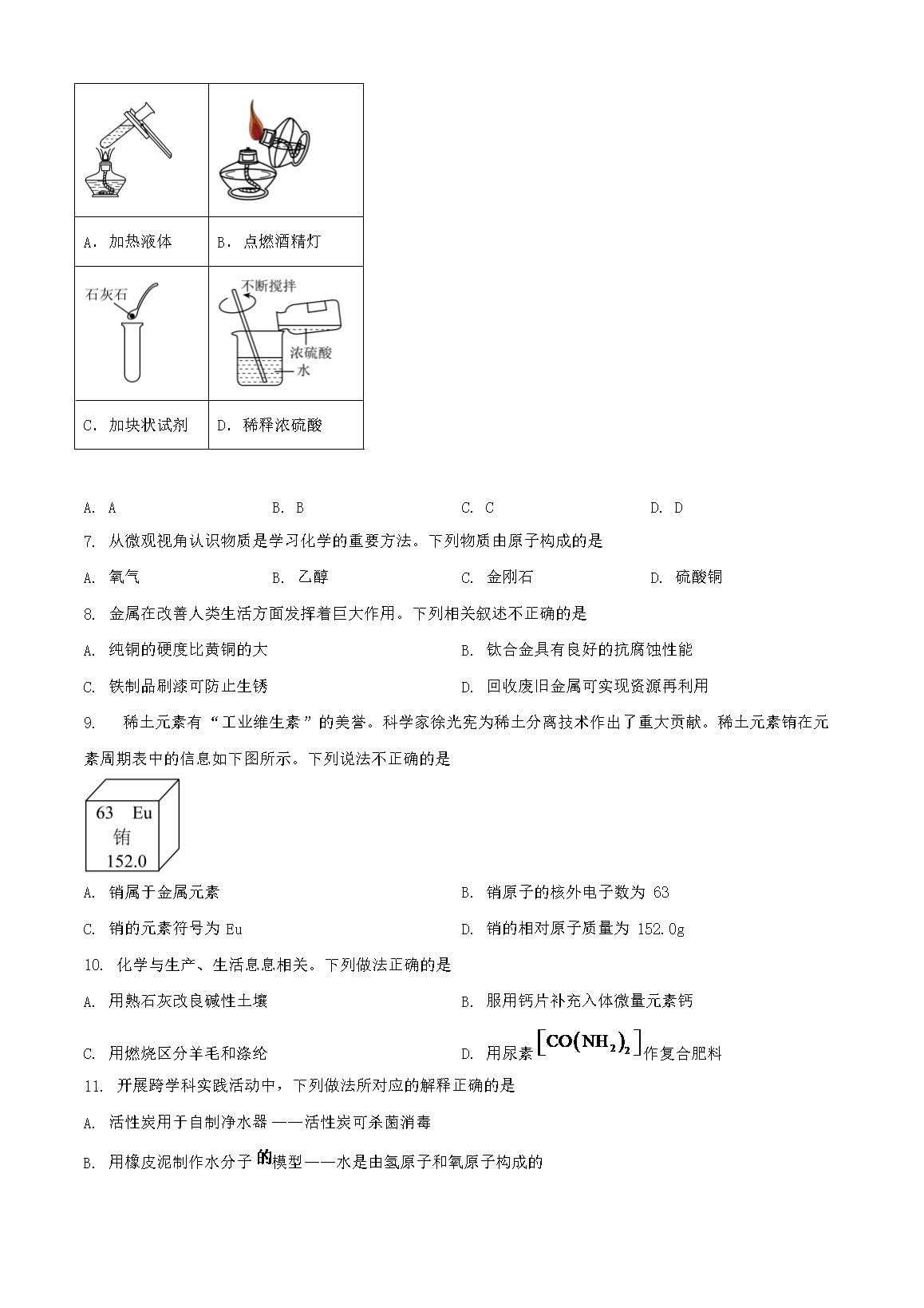 【文档名称】 2025年河南三门峡中考化学试题及答案(Word版).doc