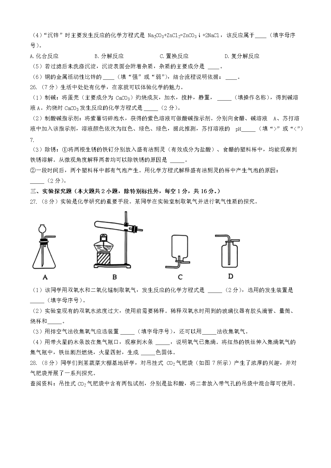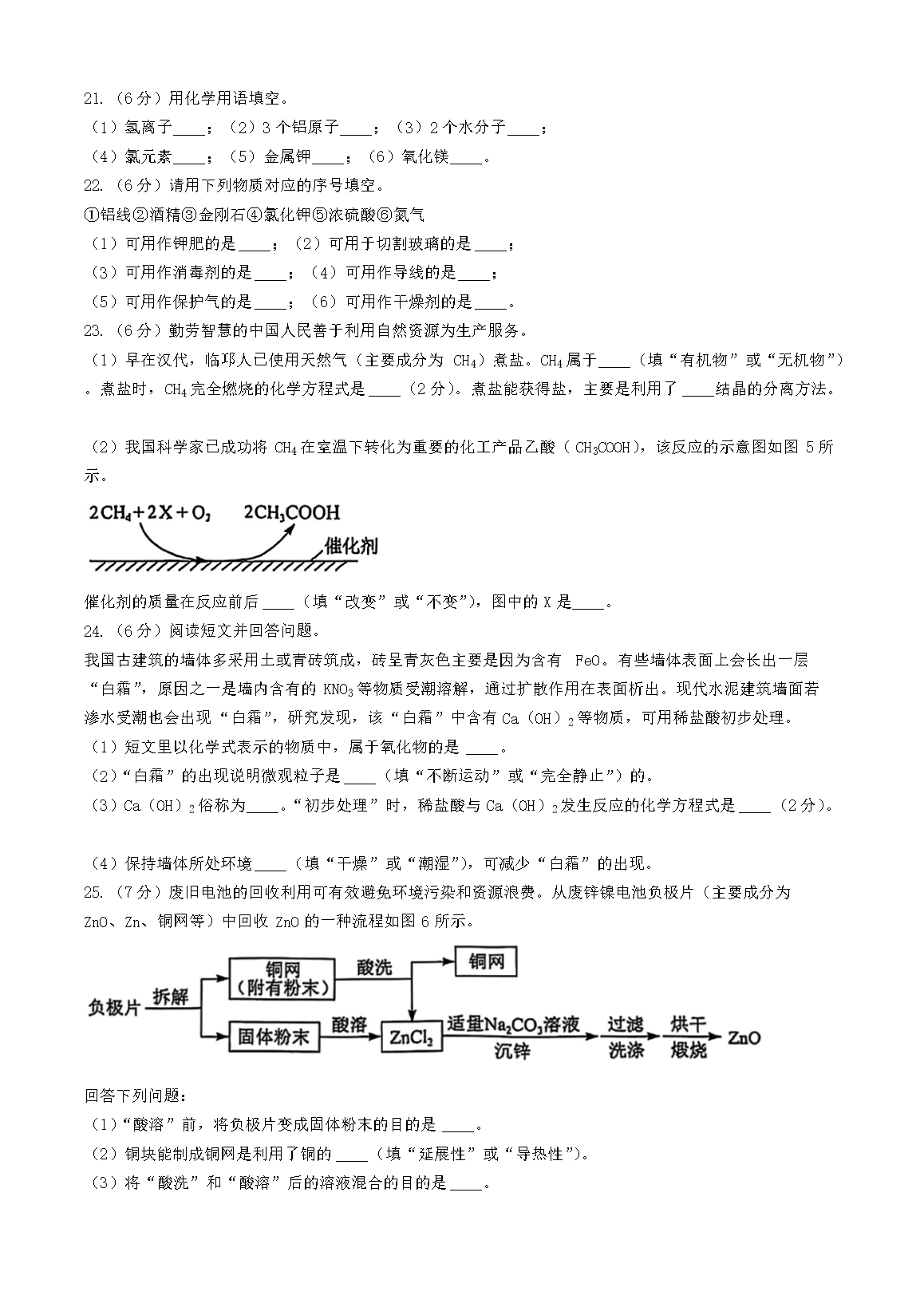 【文档名称】 2025年广西防城港中考化学试题及答案(Word版).doc